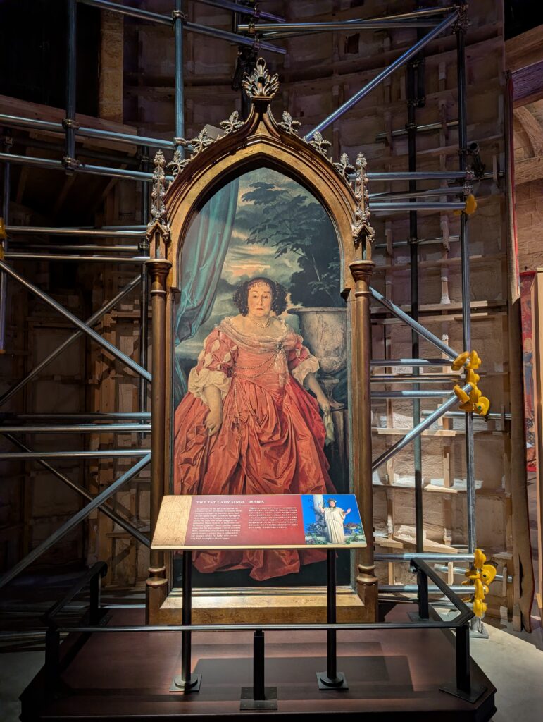 同じみの太った婦人(レディ)です。グリフィンドール寮の番人です。合言葉を言うと寮への入り口を開いてくれます。結構頻繁に合言葉が変わるのでネビルなどは覚えきれず困っていましたね。展示物の前には説明などが書かれていることが多く、映画では語られていない裏話、作成秘話、設定などを知ることができます。
